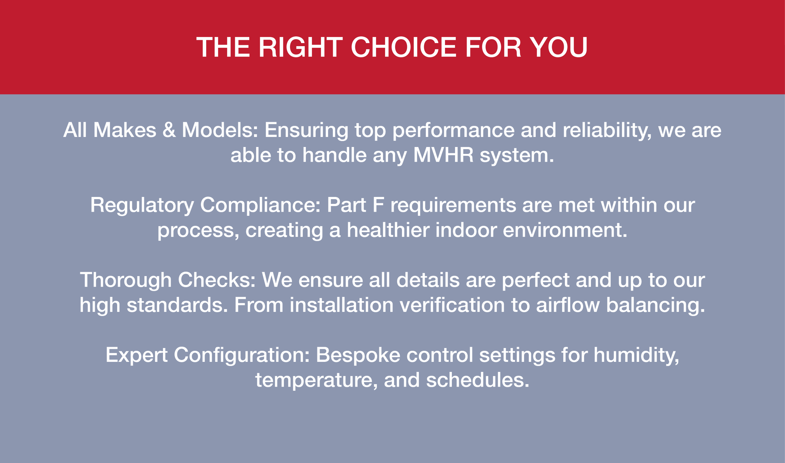 We are experts in rebalancing and commissioning MVHR (Mechanical Ventilation with Heat Recovery) systems for peak operational efficiency.